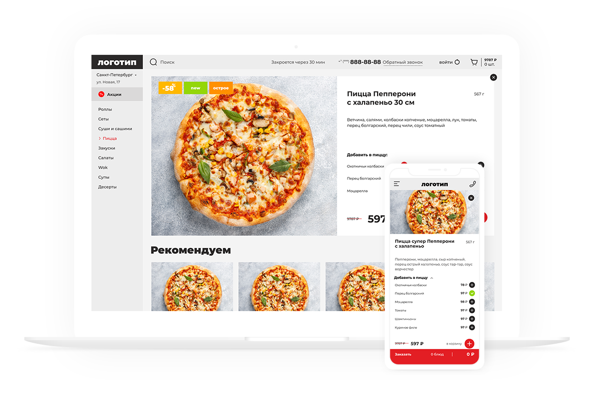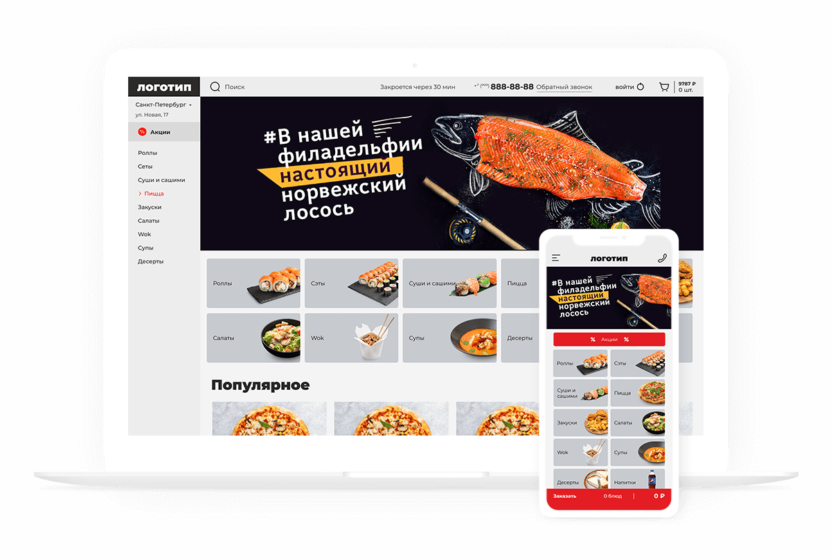Мы разработали шаблон, который подойдет практически для любого проекта доставки еды.